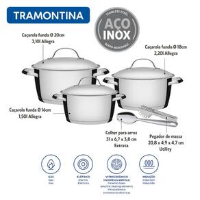 Jogo De Panelas Aço Inox Allegra 3 Peças Colher e Pegador Tramontina