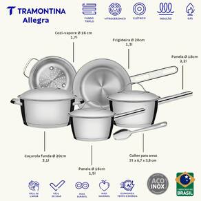 Jogo Panelas Allegra Aço Inox 5 Peças e Colher Tramontina