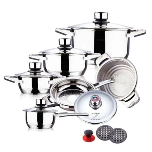 Jogo de Panelas Alemã 23 peças Luxo Melhor Panela Do Mundo, peças Em aõ Cirurgico alemã. Certificado De Garantia Mundial, Usada Pelos Melhores Chefes De Cozinha Do Mundo. Tem Garantia E Acabou De Chegar No Brasil. Oportunidade De Compra Agora Pra Voce Que Quer Ter Uma Comida De Boa Qualidade Com A Melhor Panela Do Mundo. Enviamos Para Todo Brasil.5 Litros Medindo 24CMX14CM Com Tampa 02 - 1 caçarola 3.0 Litros Medindo 20CMX10CM Com Tampa 03 - 1 caçarola 1.6 Litros Medindo 16CMX08CM Com Tampa 04 - 1 Frigideira 3.0 Litros Medindo 24CMX6.5CM Com Tampa 05 - 1 Panela 1.6 Litros Medindo 16CMX09CM Com Tampa06 - 1 Panela Vaporizadora Medindo 20CMX10CM07 - 1 Fritadeira Medindo 18CM Mais, 11 Utencilios Para Cozinha08 - 02 Bakelite Suporte De Panelas09 - 01 Conjuto De útensilios Nylon 6 PEÇAS 10 - 1 botão sucão 11 - 1 Livro De Receita Em 3 Linguas alemão, Russo E inglês 12 - cartão De certificaão De fábrica Tampas Com Termometro. Caixa Totalmente Lacrada. Garantia De 12 Meses Contra Defeitos De fabricaão Peso: 11.2KG. Marca: Nakasaki