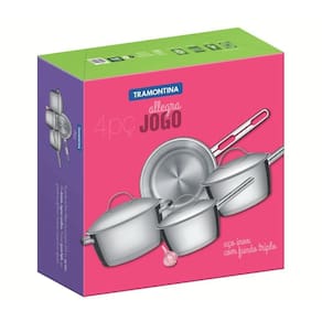 Pode escolher suas receitas preferidas, que com o Jogo de Panelas Tramontina Allegra em Aço Inox com Fundo Triplo e Tampas de Inox 4 Peças a qualidade e bom gosto estão garantidos! As quatro peças são totalmente produzidas em aço inox, material que garante alta durabilidade e segurança, já que não solta resíduo nos alimento; e fundo triplo (aço inox + alumínio + aço inox), característica que distribui o calor de forma uniforme, proporcionando um cozimento mais rápido e deixando os alimentos aquecidos por mais tempo, além de economizar mais energia. Acompanham tampas de inox com saída de vapor e encaixe perfeito, garantindo muito estilo e o acabamento em alto brilho fazem delas panelas modernas que embelezam sua cozinha. Fáceis de limpar, possuem desenho sem cantos que facilitam a limpeza, além de poderem ser lavadas diariamente na máquina de lavar louças. Versáteis, podem ser utilizadas nos fogões à gás, elétrico, vitrocerâmico e indução. É um jogo perfeito para você ter uma cozinha mais completa!