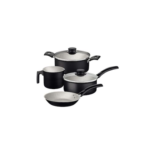 Corpo de alumínio com espessura que proporciona cozimento rápido e uniforme.Revestimento interno e externo de antiaderente Starflon Max que não gruda, é fácil de limpar, mais durável e não é prejudicial à saúde, pois é livre de PFOA.Tampas de vidro temperado com bordas de aço inox.Cabos, alças de baquelite antitérmico e pegadores de nylon que oferecem segurança durante o manuseio.Podem ir à máquina de lavar louças facilitando seu dia a dia.Pode ser utilizada nos fogões: gás, elétrico e vitrocerâmico - resistência elétrica.