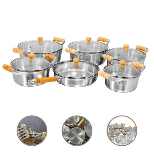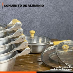 Distribuído por feheros shop jogo de panelas alumínio fundido polido e frigideira 20 cm Atenção As caçarolas são feitas de alumínio fundido polido, oferecendo alta resistência e excelente condução térmica, o que garante cozimento rápido e uniforme. As tampas de vidro com puxadores de madeira permitem acompanhar o preparo com segurança. Para conservar melhor o produto, utilize utensílios de silicone, nylon ou madeira e evite aquecer as peças vazias. Produto seguro, livre de substâncias tóxicas como pfoa. Informações do produto Prepare suas refeições com estilo e eficiência com o jogo de panelas alumínio fundido polido e frigideira 6 peças. Feitas de alumínio fundido batido, essas panelas possuem uma estrutura resistente e distribuem o calor de maneira uniforme. O acabamento polido oferece sofisticação, enquanto o revestimento antiaderente premium facilita o preparo dos alimentos e a limpeza, tornando a experiência mais eficiente e agradável. Especificações técnicas - durabilidade: o alumínio fundido proporciona maior resistência, ideal para o uso diário e intenso. - distribuição uniforme de calor: aquece rapidamente e mantém o calor de forma homogênea, garantindo um cozimento perfeito. - design funcional: a tampa de vidro é prática para monitorar os alimentos enquanto cozinham, sem perder o calor. - fácil limpeza: o acabamento polido impede o acúmulo de resíduos e facilita a remoção de sujeira. - saúde e segurança: material livre de substâncias tóxicas, como pfoa, para garantir a segurança de suas receitas. - versatilidade no cozimento: compatível com fogões a gás, e a lenha. Ideal para qualquer cozinha e tipo de preparação. - eficiência energética: com a sua capacidade de retenção e distribuição de calor eficiente, a frigideira permite que você cozinhe seus alimentos mais rápido, economizando energia e tempo. Ficha técnica do produto - panela caçarola 16 cm: diâmetro: 16 cm x altura: 7,5 cm x capacidade: 1,2 litros - panela caçarola 18 cm: diâmetro: 18 cm x altura: 8 cm x capacidade: 1,650 litros - panela caçarola 20 cm: diâmetro: 20 cm x altura: 8,5 cm x capacidade: 2,6 litros - panela caçarola 22 cm: diâmetro: 22 cm x altura: 9 cm x capacidade: 3 litros - panela caçarola 24 cm: diâmetro: 24 cm x altura: 9,5 cm x capacidade: 3,8 litros - frigideira 20 cm: diâmetro: 20 cm x altura: 6,0 cm - material: alumínio fundido polido - cor: prata - cabo: madeira - tampa: vidro temperado - espessura: entre 3 e 4 mm - compatibilidade: fogões a gás e a lenha Antes do primeiro uso - lave com uma esponja macia e detergente líquido. - seque bem com um pano seco. - aplique uma fina camada de óleo vegetal na parte interna. - leve ao fogo baixo por 2 minutos. - deixe esfriar, lave novamente e seque antes de usar. Após o uso - evite choques térmicos. Deixe o produto esfriar antes de lavar. - lave com água morna e detergente neutro, usando uma esponja macia. - use utensílios de silicone, nylon ou madeira para preservar os produtos. Itens inclusos no pacote - 01 panela caçarola 16 cm - 01 panela caçarola 18 cm - 01 panela caçarola 20 cm - 01 panela caçarola 22 cm - 01 panela caçarola 24 cm - 01 frigideira 20 cm - 06 tampas de vidro com puxadores de madeira Todas as fotos são reais dos produtos. Qualquer dúvida, estamos à disposição Dúvidas frequentes 01 - os produtos são novos Tem 03 - como faço para acompanhar o envio R: ao acessar sua conta, nos detalhes do pedido, estará disponível o código de rastreio para acompanhar a entrega.