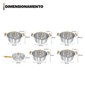 Distribuído por feheros shop jogo de panelas alumínio fundido polido e frigideira 20 cm Atenção As caçarolas são feitas de alumínio fundido polido, oferecendo alta resistência e excelente condução térmica, o que garante cozimento rápido e uniforme. As tampas de vidro com puxadores de madeira permitem acompanhar o preparo com segurança. Para conservar melhor o produto, utilize utensílios de silicone, nylon ou madeira e evite aquecer as peças vazias. Produto seguro, livre de substâncias tóxicas como pfoa. Informações do produto Prepare suas refeições com estilo e eficiência com o jogo de panelas alumínio fundido polido e frigideira 6 peças. Feitas de alumínio fundido batido, essas panelas possuem uma estrutura resistente e distribuem o calor de maneira uniforme. O acabamento polido oferece sofisticação, enquanto o revestimento antiaderente premium facilita o preparo dos alimentos e a limpeza, tornando a experiência mais eficiente e agradável. Especificações técnicas - durabilidade: o alumínio fundido proporciona maior resistência, ideal para o uso diário e intenso. - distribuição uniforme de calor: aquece rapidamente e mantém o calor de forma homogênea, garantindo um cozimento perfeito. - design funcional: a tampa de vidro é prática para monitorar os alimentos enquanto cozinham, sem perder o calor. - fácil limpeza: o acabamento polido impede o acúmulo de resíduos e facilita a remoção de sujeira. - saúde e segurança: material livre de substâncias tóxicas, como pfoa, para garantir a segurança de suas receitas. - versatilidade no cozimento: compatível com fogões a gás, e a lenha. Ideal para qualquer cozinha e tipo de preparação. - eficiência energética: com a sua capacidade de retenção e distribuição de calor eficiente, a frigideira permite que você cozinhe seus alimentos mais rápido, economizando energia e tempo. Ficha técnica do produto - panela caçarola 16 cm: diâmetro: 16 cm x altura: 7,5 cm x capacidade: 1,2 litros - panela caçarola 18 cm: diâmetro: 18 cm x altura: 8 cm x capacidade: 1,650 litros - panela caçarola 20 cm: diâmetro: 20 cm x altura: 8,5 cm x capacidade: 2,6 litros - panela caçarola 22 cm: diâmetro: 22 cm x altura: 9 cm x capacidade: 3 litros - panela caçarola 24 cm: diâmetro: 24 cm x altura: 9,5 cm x capacidade: 3,8 litros - frigideira 20 cm: diâmetro: 20 cm x altura: 6,0 cm - material: alumínio fundido polido - cor: prata - cabo: madeira - tampa: vidro temperado - espessura: entre 3 e 4 mm - compatibilidade: fogões a gás e a lenha Antes do primeiro uso - lave com uma esponja macia e detergente líquido. - seque bem com um pano seco. - aplique uma fina camada de óleo vegetal na parte interna. - leve ao fogo baixo por 2 minutos. - deixe esfriar, lave novamente e seque antes de usar. Após o uso - evite choques térmicos. Deixe o produto esfriar antes de lavar. - lave com água morna e detergente neutro, usando uma esponja macia. - use utensílios de silicone, nylon ou madeira para preservar os produtos. Itens inclusos no pacote - 01 panela caçarola 16 cm - 01 panela caçarola 18 cm - 01 panela caçarola 20 cm - 01 panela caçarola 22 cm - 01 panela caçarola 24 cm - 01 frigideira 20 cm - 06 tampas de vidro com puxadores de madeira Todas as fotos são reais dos produtos. Qualquer dúvida, estamos à disposição Dúvidas frequentes 01 - os produtos são novos Tem 03 - como faço para acompanhar o envio R: ao acessar sua conta, nos detalhes do pedido, estará disponível o código de rastreio para acompanhar a entrega.