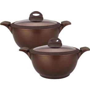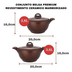 Estilo, qualidade e modernidade na cozinha. A linha Belga 5 mm com técnologia antiaderente Cerâmic-Flon traz personalidade para a sua cozinha. Altamente resistentes, livres de metais pesados e elementos químicos prejudiciais à saúde, exigem menos uso de óleo e sua limpeza é extremamente fácil. A linha Belga ajuda a manter sua alimentação saudável e prática. As tampas em vidro temperado possuem saída para o vapor permitindo que você acompanhe o preparo das suas receitas, os cabos e alças possuem revestimento Soft-Touch que não esquenta durante o uso e seu toque seja confortável e seguro. Suas alças são removíveis, permitindo ainda que o produto vá ao forno. Uma caçarola que vira forma para bolo Temos Modernidade e sofisticação na cozinha, definem a linha Belga. - Fundo para Eletroindução, sistema que aquece mais rápido. - Cerâmico. - Elétrico. - Halogênio. - Gás. Composição: 02 Caçarola nr. 20 de 2,4 litros Instruções de uso: - Antes de usar, lave e enxugue a suas panelas por completo. - Não coloque a peça vazia para aquecer. - Ao utilizar a peça em fogão a gás, a chama não deve ultrapassar a base, em fogões elétricos ou vitro-cerâmicos, o diametro da boca deverá ser igual ou inferior ao do fundo da peça. Isso evita que o alimento queime. Limpeza e conservação: - Para manter o brilho da seu jogo belga, lave somente com uma esponja macia, detergente ou sabão neutro. Não use lã de aço ou outros abrasivos - Para mexer ou retirar os alimentos use utensilios de silicone, nylon, polipropileno ou madeira. Não use objeatos pontiagudos, não raspe e não corte o alimento dentro da peça, para não riscar. - Evite água com excesso de cloro, para evitar manchas. - Deixe a peça esfriar antes de lavar em água fria. Isso facilita a limpeza - Caso a comida quieime, deixe a peça esfriar e coloque-a de molho em água por alguns minutos antes de lavar.