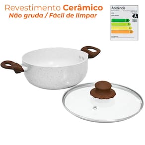 O conjunto de panelas possui revestimento antiaderente em cerâmica com classificação A do Inmetro, não gruda, é mais fácil de limpar e mais saudável, pois as panelas utilizam menos óleo para o cozimento e são livres de metais pesados.