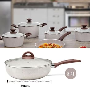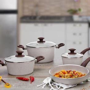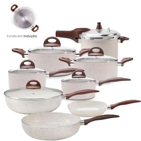 Toda cozinha precisa de uma Panela prática e que favoreça uma alimentação saudável A panela com tampa e fundo de indução da linha Granada, feita para você passar menos tempo preparando suas receitas e cozinhando de forma mais segura em todos os tipos de fogões.Com antiaderente Pro Ceramic Premium, a caçarola é resistente e livre de metais pesados e elementos químicos prejudiciais à saúde, exigindo menos uso de óleo no preparo das refeições, não deixando os alimentos grudarem, facilitando a limpeza e consumindo menos energia. Mais resistente e durável, a caçarola cozinha os alimentos por igual e rapidamente, facilita a visualização dos ingredientes sem prejudicar o cozimento, o cabo com revestimento Soft-Touch, não esquentam durante o uso e têm toque macio. Nesta versão, a panela tem otimo acabamento. Sua pintura externa é na cor Vanilla.Composição do Conjunto1 panela Caçarola Indução Brinox 24cm Vanilla,1 panela Caçarola Indução Brinox 20cm Vanilla,1 panela Indução Brinox 18cm Vanilla,1 panela Indução Brinox 16cm Vanilla,1 frigideira Indução Brinox 20cm Vanilla,1 frigideira WOK Indução Brinox s/Tampa 28cm Vanilla,1 frigideira WOK Indução Brinox C/Tampa 28cm Vanilla,1 panela de Pressao Brinox 4,2L Indução Vanilla
