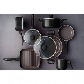 Composição - Jogo de Panelas Pretas Antiaderente Brinox Ceramic Life Easy 7 peças01 Caçarola com Tampa - Diâmetro: 24 cm | Altura: 11,5 cm | Capacidade: 4,55 L01 Caçarola com Tampa - Diâmetro: 20 cm | Altura: 9,5 cm | Capacidade: 2,55 L01 Panela com Tampa - Diâmetro: 18 cm | Altura: 9,2 cm | Capacidade: 2,1 L01 Panela com Tampa Diâmetro: 16 cm | Altura: 8,2 cm | Capacidade: 1,4 L01 Frigideira Diâmetro: 18 cm | Altura: 3,4 cm | Capacidade: 0,55 L01 Grill - Diâmetro: 24 cm | Altura: 3 cm | Capacidade: 1,35 L01 Fervedor - Diâmetro: 12 cm | Altura: 11,8 cm | Capacidade: 1,25 L