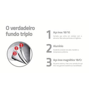 - Economiza tempo e energia: o segredo está no fundo triplo (aço inox + alumínio + aço inox), que distribui o calor uniformemente, proporcionando um cozimento mais rápido. Por isso, você pode manter o fogo baixo durante todo o preparo e, assim, poupar energia. Além disso, a panela toda em aço inox pode ir ao forno para gratinar ou finalizar pratos, na temperatura máxima de 260C.