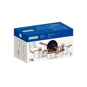 Itens inclusos: 1 panela 16 cm (1,4 L); 1 caçarola 20 cm (2,9 L); 1 caçarola 24 cm (4,7 L); 1 frigideira 24 cm (2,4 L)