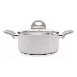 ESPECIFICAÇÕES TÉCNICAS: o Conjunto de Panelas é composto por Caçarola com Tampa Ø 24x11,5cm - 4,55 L; Caçarola com Tampa Ø 20x9,5 cm – 2,55 L; Panela com Tampa Ø 18x9,2 cm - 2,1 L; Panela com Tampa Ø 16x8,2 cm - 1,4 L; Wok Ø 24 cm – 2,65 L; Fervedor Ø 12x11,8 cm - 1,25 L; 1 colher e 1 espátula. As panelas, em alumínio, possuem antiaderente cerâmico Pro-Ceramic e Mineral Resist. As tampas são em vidro temperado. Os cabos, alças e poméis são em baquelite com acabamento soft-touch. Cor Vanilla.