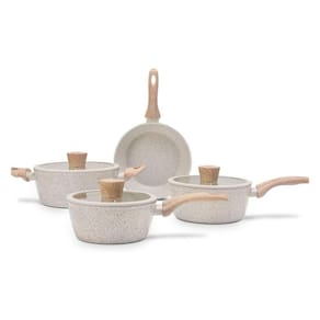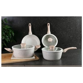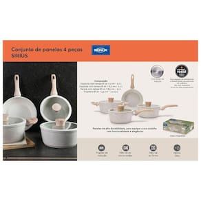 Se você é o tipo de pessoa que preza por qualidade e inovação na cozinha lhe apresentamos o Jogo de Panelas com Revestimento Cerâmico Brinox, um produto de extrema qualidade que se preocupa com a experiência do consumidor, produzida em alumínio que proporciona grande durabilidade e resistência ao produto sem se esquecer de ser prático, pois o alumínio deixa a panela leve ao contrário das panelas de inox. Juntamente com seu revestimento antiaderente cerâmico que concede cozimentos mais rápidos - além de serem livres de toxinas. Outro ponto deste produto que vale a pena destacar é seu fundo que funciona em vários tipos de fogão - incluindo indução-, trazendo uma grande praticidade e se destacando no mercado. Características: Marca: Brinox Código do Fabricante: 4814/100 Linha: Ceramic Life Sirius Cor: Vanilla Material: Alumínio Material da Alça/Pegador: Soft Touch Antiaderente: Sim (revestimento cerâmico) Espessura: 4mm Fogões Compatíveis: Gás, elétrico, vitrocerâmico e indução Conteúdo: 1 Caçarola 22cm 2.7L, 1 Frigideira 22cm 1.2L, 1 Panela 18cm 1.5L e 1 Panela 20cm 2.1L Compatível com Lava-louças: Não Material das Tampas: Vidro temperado Saída de Vapor: Sim