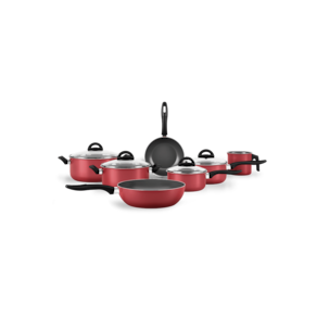 Com estrutura em alumínio que cozinha por igual e mais rápido, tampas de vidro temperado, com saída para vapor, cabos e alças de baquelite que não esquentam. O conjunto de panelas 5 peças da linha Chilli possui antiaderente pro-flon que não gruda, é fácil de limpar e livre de PFOA. Como todas as panelas da Brinox, a linha Chilli possui Classificação A no Inmetro. Nessa versão disponível na cor vermelho cereja com um toque rosado, trazendo cor e sabor à cozinha e ransformando o ambiente num lugar mais autêntico e alegre. Pintura externa: vermelho cereja. Esse conjunto é composto por: Caçarola com Tampa Ø 24x11,5 cm - 4,5 L, Caçarola com Tampa Ø 20x10 cm - 2,65 L, Panela com Tampa Ø 18x9 cm - 1,9, Panela com Tampa Ø 16x8 cm - 1,3 L, Frigideira Ø 20x4 cm - 0,8 L, Wok Ø 24 cm - 2.3 L e Fervedor Ø 14x12,5 cm - 1,8 L.