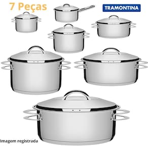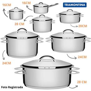 Você está adquirindo um jogo de panelas linha solar tramontina. Durabilidade, praticidade, fácil uso, aço inox, fundo triplo;