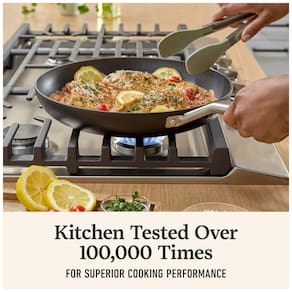 Concebido com durabilidade e versatilidade em mente, este conjunto de panelas Calphalon HardAnodized Antiaderente eleva a culinária do dia a dia. Testada na cozinha mais de 100.000 vezes, esta frigideira oferece um desempenho culinário superior no qual você pode confiar a cada refeição. Experimente utensílios de cozinha que trazem mais do que comida para a mesa, proporcionando aquecimento uniforme e seguro no forno a até 232°C, liberação de alimentos fácil e segura, e limpeza sem esforço na lava-louças. Projetada para empoderar a confiança na cozinha, com tecnologia antiaderente duradoura e uma alça de aço inoxidável que permanece fria no fogão. Um item essencial de cozinha para todo chef caseiro, esta panela é ideal para pochar peixes, fritar bifes, fazer molhos e muito mais. Testada na Cozinha Mais de 100.000 Vezes - Desempenho culinário superior respaldado por testes rigorosos de durabilidade. Lava-louças Seguro - Para uma limpeza sem esforço, a frigideira e a tampa são seguras para lava-louças. Construção em Alumínio HardAnodized - Proporciona aquecimento rápido e uniforme para resultados de cocção precisos. Alças que Permanecem Frias - As longas alças de aço inoxidável permanecem frias nos fogões. Seguro para Forno até 232°C - Vai do fogão para o forno com facilidade. Tecnologia Antiaderente Avançada - Mantém as panelas com desempenho de novas. Inclui Frigideira com tampa de vidro temperado. Compatível com Fogão Elétrico, de Vidro e a Gás - Utensílios de cozinha versáteis para uso em todas as cozinhas.