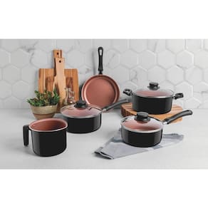 Jogo de Panelas Caribe Kit 5 Peças em Alumínio Preto com Revestimento Antiaderente Starflon Max e Tampas de Vidro