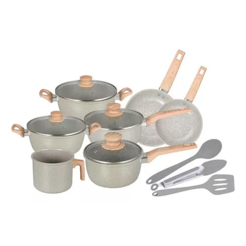 Com um design elegante na tonalidade cinza, este conjunto combina beleza e funcionalidade, elevando o nível das suas preparações culinárias.Resistente e eficiente, esse conjunto é ideal para quem valoriza desempenho e beleza na cozinha.