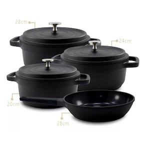 Cozinhar será muito mais prazeroso e saudável lindo jogo de panelas com exclusivo com o mesmo design das conhecidas panelas francesas, porém em alumínio fundido que mantém a mesma qualidade além do seu revestimento cerâmica possui pintura esmaltada fosca que é pura elegância.As panelas reúnem alta tecnologia, que garante máxima velocidade no preparo de suas receitas, qualidade e resistência para acompanhar seu dia a dia e facilidade de limpar, conservar e usar novamente.