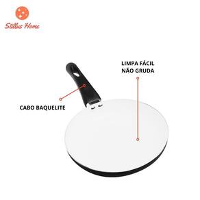 Descrição Jogo 5 panelas roma preto - dimensões das peças: - leiteira: - diâmetro: 14cm - altura: 12cm - caçarola com tampa: - diâmetro: 20cm - altura: 8cm - panela com tampa: - diâmetro: 16cm - altura: 6,5cm - comprimento com o cabo: 33cm - altura com a tampa: 12cm - panela com tampa: - diâmetro: 18cm - altura: 7cm - comprimento com o cabo: 35cm - altura com a tampa: 12cm - frigideira: - diâmetro: 20cm - altura: 5cm - espessura: 3mm - material: - corpo em alumínio - antiaderente de cerâmica - cabo, alças, botão da tampa de baquelite - tampas de vidro - cor: - parte interna: branco - parte externa: preta - marca: haskraft - capacidade: - caçarola com tampa: 2,2l - panela com tampa: 1,5l - panela com tampa: 1,1l - frigideira: 650ml - leiteira: 1,6l - contém: 1 conjunto com 5 peças - características: - cerâmica - antiaderente - tampa com saída de vapor - apto ao: - fogão convencional - apto a geladeira - não apto: - fogão de indução - não apto ao forno convencional - não apto ao forno elétrico - não apto ao micro-ondas - não apto ao freezer - não apto a lava louças - limpeza e conservação: - antes de utilizar, remova as etiquetas e lave com esponja macia, utilizando sabão neutro. Enxugue bem com um pano macio, e já estará pronto para usar. - para manter a conservação, basta lavar com água, detergente e sabão neutro, utilizando uma esponja macia. - para remover alimentos grudados ou queimados, deixe de molho com água morna por alguns minutos. Lave em seguida. - enxugue imediatamente após a lavagem para prevenir manchas. - não é recomendado lavar em máquina de lava louça. - dicas de segurança: - nunca deixe alimentos cozinhando sem acompanhamento. - utilize luvas ao manusear utensílios quentes. do vendedor: 3 meses
