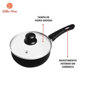 Descrição Jogo 5 panelas roma preto - dimensões das peças: - leiteira: - diâmetro: 14cm - altura: 12cm - caçarola com tampa: - diâmetro: 20cm - altura: 8cm - panela com tampa: - diâmetro: 16cm - altura: 6,5cm - comprimento com o cabo: 33cm - altura com a tampa: 12cm - panela com tampa: - diâmetro: 18cm - altura: 7cm - comprimento com o cabo: 35cm - altura com a tampa: 12cm - frigideira: - diâmetro: 20cm - altura: 5cm - espessura: 3mm - material: - corpo em alumínio - antiaderente de cerâmica - cabo, alças, botão da tampa de baquelite - tampas de vidro - cor: - parte interna: branco - parte externa: preta - marca: haskraft - capacidade: - caçarola com tampa: 2,2l - panela com tampa: 1,5l - panela com tampa: 1,1l - frigideira: 650ml - leiteira: 1,6l - contém: 1 conjunto com 5 peças - características: - cerâmica - antiaderente - tampa com saída de vapor - apto ao: - fogão convencional - apto a geladeira - não apto: - fogão de indução - não apto ao forno convencional - não apto ao forno elétrico - não apto ao micro-ondas - não apto ao freezer - não apto a lava louças - limpeza e conservação: - antes de utilizar, remova as etiquetas e lave com esponja macia, utilizando sabão neutro. Enxugue bem com um pano macio, e já estará pronto para usar. - para manter a conservação, basta lavar com água, detergente e sabão neutro, utilizando uma esponja macia. - para remover alimentos grudados ou queimados, deixe de molho com água morna por alguns minutos. Lave em seguida. - enxugue imediatamente após a lavagem para prevenir manchas. - não é recomendado lavar em máquina de lava louça. - dicas de segurança: - nunca deixe alimentos cozinhando sem acompanhamento. - utilize luvas ao manusear utensílios quentes. do vendedor: 3 meses Marca: Não Informado Ean: 7894800197274