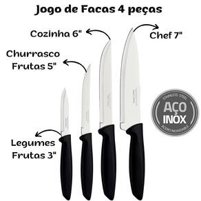 O que vem na embalagem: 1 Caçarola Ø 22 cm 3,6 L 1 Fervedor Ø 14 cm 1,8 L 1 Frigideira Ø 22 cm 1,6 L 1 Panela Ø 16 cm 1,3 L 1 Panela Ø 18 cm 2 L 1 Colher para Servir 1 Concha 1 Espumadeira 1 Espátula 1 Faca para Churrasco/ Frutas 5" 1 Faca para Legumes e Frutas 3" 1 Faca para Cozinha 6" 1 Faca Chef 7"