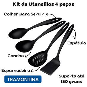 Utensílios de nylon resistentes até uma temperatura de 180 °C. Cabos com furo passante possibilitando que sejam pendurados na sua cozinha. Utensílios ideais para uso em panelas com revestimentos antiaderentes e cerâmicos, pois não danifica o produto.
