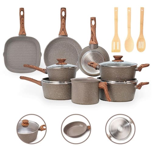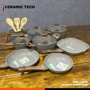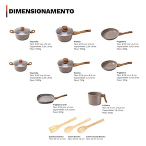 Distribuído por feheros shop Jogo de panelas completo 11 peças revestimento cerâmico premium indução Atenção As panelas com revestimento cerâmico oferecem propriedades antiaderentes, mas não são 100% antiaderentes. Para melhores resultados, recomenda-se o uso de pequenas quantidades de óleo ou . O revestimento cerâmico é uma alternativa saudável e ecológica, pois não libera substâncias tóxicas quando aquecido. - panelas premium com certificação inmetro nível a - não deixe a chama do fogão pegar nas laterais das panelas - leia atentamente a descrição e siga as recomendações do fabricante Informações do produto - versatilidade incrível: compatível com fogões a gás, elétrico, vitrocerâmico e de indução - durabilidade excepcional: revestimento cerâmico resistente a arranhões e abrasões - cozinha saudável: livre de pfoa e ptfe, ideal para quem busca mais saúde - design premium: acabamento moderno e elegante que facilita a limpeza - economia de tempo e energia: aquece rápido e distribui o calor de forma uniforme - conjunto completo: 11 peças para preparar diversas receitas com praticidade Especificações técnicas - compatível com fogões a gás, elétricos, vitrocerâmicos e de indução - revestimento cerâmico em 3 camadas com espessura de 4 mm - cabo de baquelite com revestimento soft touch, confortável e seguro - permite cozinhar com menos óleo graças ao revestimento antiaderente cerâmico - livre de pfoa e classificado como nível a no inmetro - fundo triplo com indução: estrutura em alumínio com cerâmica, economia de energia - composição de revestimento: 2 camadas cerâmicas + 1 camada resistente a alta temperatura Ficha técnica do produto - panela 16 cm: d 16 cm x a 8,5 cm c 1300 ml p 730 g - panela 20 cm: d 20 cm x a 9 cm c 2250 ml p 1050 g - caçarola 20 cm: d 20 cm x a 9 cm c 2250 ml p 1080 g - caçarola 22 cm: d 22 cm x a 10 cm c 3250 ml p 1350 g - leiteira 14 cm: d 14 cm x a 10,5 cm c 2000 ml p 350 g - frigideira 18 cm: d 18 cm x a 4 cm c 750 ml p 300 g - frigideira 22 cm: d 22 cm x a 4,7 cm c 1450 ml p 500 g - frigideira grill 24cm: 24 cm x 24 cm a 3 cm p 600g - espátula vazada de bambu: 30 x 6 x 1 cm - colher vazada de bambu: 30 x 6 x 1 cm - colher para arroz de bambu: 30 x 6 x 1 cm Importante: d= diâmetro, a= altura, c= capacidade, p= peso Antes do primeiro uso - lave com esponja macia e detergente - seque com pano de prato - aplique um pouco de óleo na parte interna - leve ao fogo baixo por 2 minutos - desligue o fogo e espere esfriar - lave novamente e seque Após o uso - evite choques térmicos. Deixe esfriar antes de lavar - lave à mão com água morna, esponja macia e detergente - enxágue e seque com pano macio - para alimentos queimados, deixe de molho e use materiais não abrasivos - não utilize utensílios metálicos, objetos afiados ou produtos abrasivos Itens inclusos no pacote - 01 panela 16 cm com tampa de vidro - 01 panela 20 cm com tampa de vidro - 01 caçarola 20 cm com tampa de vidro - 01 caçarola 22 cm com tampa de vidro - 01 leiteira 14 cm - 01 frigideira 18 cm - 01 frigideira 22 cm - 01 frigideira grill quadrado 24cm - 01 espátula vazada de bambu - 01 colher vazada de bambu - 01 colher para arroz de bambu Todas as fotos são reais dos produtos. Qualquer dúvida, estamos à disposição Dúvidas frequentes 01- o produto pode ir ao forno R: não, estes modelos não são adequados para uso no forno devido ao cabo em baquelite. 02- o produto é novo Possui R: sim, o produto é novo e possui de 3 meses conforme as normas do fabricante. 03- é compatível com fogão de indução R: sim, possuem fundo especial que permite o uso em fogões de indução, além de fogões a gás, elétricos e vitrocerâmicos.