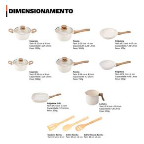 Distribuído por feheros shop Jogo de panelas completo 11 peças revestimento cerâmico premium indução Atenção As panelas com revestimento cerâmico oferecem propriedades antiaderentes, mas não são 100% antiaderentes. Para melhores resultados, recomenda-se o uso de pequenas quantidades de óleo ou . O revestimento cerâmico é uma alternativa saudável e ecológica, pois não libera substâncias tóxicas quando aquecido. - panelas premium com certificação inmetro nível a - não deixe a chama do fogão pegar nas laterais das panelas - leia atentamente a descrição e siga as recomendações do fabricante Informações do produto - versatilidade incrível: compatível com fogões a gás, elétrico, vitrocerâmico e de indução - durabilidade excepcional: revestimento cerâmico resistente a arranhões e abrasões - cozinha saudável: livre de pfoa e ptfe, ideal para quem busca mais saúde - design premium: acabamento moderno e elegante que facilita a limpeza - economia de tempo e energia: aquece rápido e distribui o calor de forma uniforme - conjunto completo: 11 peças para preparar diversas receitas com praticidade Especificações técnicas - compatível com fogões a gás, elétricos, vitrocerâmicos e de indução - revestimento cerâmico em 3 camadas com espessura de 4 mm - cabo de baquelite com revestimento soft touch, confortável e seguro - permite cozinhar com menos óleo graças ao revestimento antiaderente cerâmico - livre de pfoa e classificado como nível a no inmetro - fundo triplo com indução: estrutura em alumínio com cerâmica, economia de energia - composição de revestimento: 2 camadas cerâmicas + 1 camada resistente a alta temperatura Ficha técnica do produto - panela 16 cm: d 16 cm x a 8,5 cm c 1300 ml p 730 g - panela 20 cm: d 20 cm x a 9 cm c 2250 ml p 1050 g - caçarola 20 cm: d 20 cm x a 9 cm c 2250 ml p 1080 g - caçarola 22 cm: d 22 cm x a 10 cm c 3250 ml p 1350 g - leiteira 14 cm: d 14 cm x a 10,5 cm c 2000 ml p 350 g - frigideira 18 cm: d 18 cm x a 4 cm c 750 ml p 300 g - frigideira 22 cm: d 22 cm x a 4,7 cm c 1450 ml p 500 g - frigideira grill 24cm: 24 cm x 24 cm a 3 cm p 600g - espátula vazada de bambu: 30 x 6 x 1 cm - colher vazada de bambu: 30 x 6 x 1 cm - colher para arroz de bambu: 30 x 6 x 1 cm Importante: d= diâmetro, a= altura, c= capacidade, p= peso Antes do primeiro uso - lave com esponja macia e detergente - seque com pano de prato - aplique um pouco de óleo na parte interna - leve ao fogo baixo por 2 minutos - desligue o fogo e espere esfriar - lave novamente e seque Após o uso - evite choques térmicos. Deixe esfriar antes de lavar - lave à mão com água morna, esponja macia e detergente - enxágue e seque com pano macio - para alimentos queimados, deixe de molho e use materiais não abrasivos - não utilize utensílios metálicos, objetos afiados ou produtos abrasivos Itens inclusos no pacote - 01 panela 16 cm com tampa de vidro - 01 panela 20 cm com tampa de vidro - 01 caçarola 20 cm com tampa de vidro - 01 caçarola 22 cm com tampa de vidro - 01 leiteira 14 cm - 01 frigideira 18 cm - 01 frigideira 22 cm - 01 frigideira grill quadrado 24cm - 01 espátula vazada de bambu - 01 colher vazada de bambu - 01 colher para arroz de bambu Todas as fotos são reais dos produtos. Qualquer dúvida, estamos à disposição Dúvidas frequentes 01- o produto pode ir ao forno R: não, estes modelos não são adequados para uso no forno devido ao cabo em baquelite. 02- o produto é novo Possui R: sim, o produto é novo e possui de 3 meses conforme as normas do fabricante. 03- é compatível com fogão de indução R: sim, possuem fundo especial que permite o uso em fogões de indução, além de fogões a gás, elétricos e vitrocerâmicos.