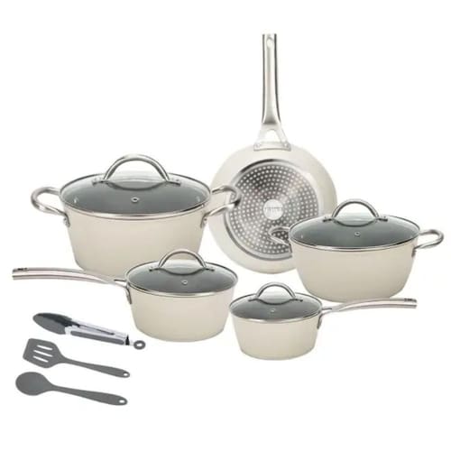 Cada peça é fabricada com revestimento cerâmico de alta performance, que proporciona cozimento uniforme, evita que os alimentos grudem e facilita a limpeza. As alças de silicone oferecem segurança e conforto térmico, enquanto as tampas de vidro temperado com saída de vapor permitem o controle perfeito do preparo.