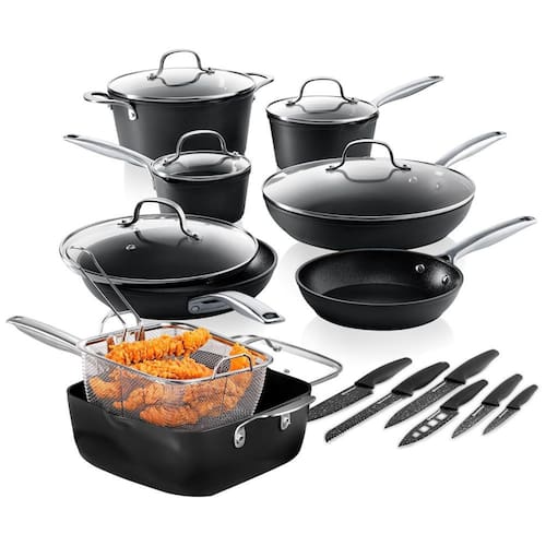 GRANITESTONE ARMOR MAX: Cada peça de panela Granitestone Armor Max é construída para durar a vida toda e, ao mesmo tempo, fornecer a melhor experiência antiaderente já produzida pela Granitestone. O exterior resistente, forjado e anodizado rígido combinado com um interior antiaderente de 4 camadas garante que você tenha as melhores panelas antiaderentes do por muitos anos.