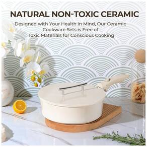Maximize o Espaço com 75% de Eficiência: Nossos conjuntos de panelas de cerâmica com alça removível são projetados para empilhamento fácil, economizando até 75% do espaço em suas gavetas ou armários. Ideal para cozinhas compactas, este conjunto também é perfeito para acampamentos, trailers e viagens de RV, oferecendo praticidade e portabilidade. Revestimento Cerâmico Não Tóxico e Elegância Excepcional: Produzido com revestimento cerâmico premium, tanto interno quanto externo, este conjunto oferece uma experiência de cozimento mais saudável em comparação com revestimentos tradicionais. Desenvolvido por designers premiados, combina funcionalidade e sofisticação para transformar sua cozinha em um espaço moderno e elegante. Antiaderente Supremo: Chega de lutar com panelas grudadas! Com tecnologia avançada, nosso conjunto Ailwyn oferece uma liberação perfeita de alimentos, mesmo com os ingredientes mais desafiadores, como queijos e molhos pegajosos. Uma simples passada de pano restaura sua aparência impecável, facilitando a limpeza.