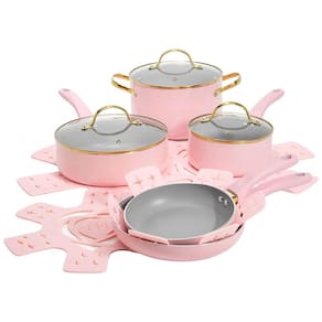 Jogo de Panelas e Frigideiras com Revestimento Antiaderente e Tampas de Vidro Temperado, 12 Peças, Paris Hilton, Rosa - Jogo de Panelas e Frigideiras Antiaderente com Tampas de Vidro