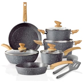Jogo de Panelas e Frigideiras em Granito com Revestimento Antiaderente de Indução, 12 Peças, KITCHEN, Cinza