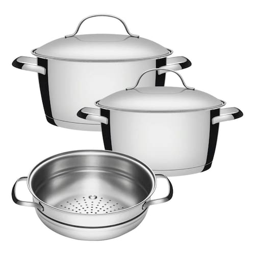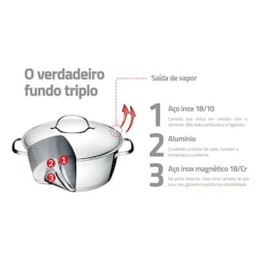 - 3 peças essenciais: Com diferentes tamanhos, perfeitas para preparar desde receitas simples até pratos mais elaborados. - Fundo triplo: Proporciona um cozimento rápido e uniforme, economizando energia e preservando os nutrientes dos alimentos. - Fácil de limpar: Pode ser lavado na lava-louças, mantendo o brilho e a beleza por muito mais tempo. - Versátil: Compatível com fogões a gás, elétricos, vitrocerâmicos e por indução.