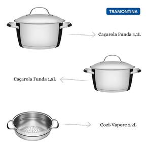 Jogo De Panelas 3 Peças Allegra Tramontina Aço Inox Funda