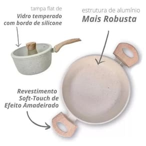 Jogo de panelas em alumínio Brinox Sirius 4 peças vanilla CONJUNTO DE PANELAS:Composição:Caçarola com tampa 22x9cm - 2,7 LPanela com tampa 20x8,5cm - 2,1 LPanela com tampa 18x8 cm - 1,5 LFrigideira 22x4,5 cm - 1,2 LDETALHES:-Tampa flat de vidro temperado com borda de silicone com saída para vapor.- Cabos e alças de baquelite com revestimento Soft-Touch de efeito amadeirado.- Estrutura de alumínio mais robusta cozinha por igual e mais rápido, consumindo menos energia.VOCÊ PODE UTILIZAR AS PANELAS BRINOX CERAMIC LIFE SIRIUS NOS SEGUINTES TIPOS DE FOGÕES:- Gás- Vitrocerâmico- Elétrico- InduçãoATENÇÃO!- Não vai á lava-louça.- Não vai ao micro-ondas.- Não pode ser utilizado em forno. Informações complementares Cor Vanilla Marca Brinox Material
