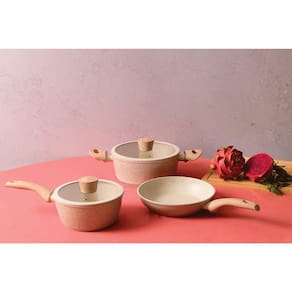 - Dimensões: Panela 18x8cm | Panela 20x8,5cm | Caçarola 22x9cm | Frigideira 22x4,5cm