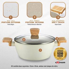 Jogo de Panelas Alphaville Marmol Vulkano Extream - Tecnologia UltraShield Nano Ceramic e Compatibilidade com Fogão de InduçãoTransforme sua cozinha com o Kit de Panelas Alphaville Marmol Vulkano Extream, desenvolvido para quem busca qualidade, durabilidade e inovação. Com um design moderno na cor Marmol Vulkano, este conjunto de 11 peças oferece tudo o que você precisa para um cozimento eficiente e prático.Funciona em TODOS os Tipos de Fogões, incluindo InduçãoGraças à sua base especial, este kit é totalmente compatível com fogões de indução, além de funcionar perfeitamente em fogões a gás, elétricos e vitrocerâmicos.Destaques do Produto:- Revestimento UltraShield Nano Ceramic Antiaderente - Tecnologia cerâmica avançada que impede que os alimentos grudem, proporcionando um cozimento mais saudável e facilitando a limpeza.- Alumínio Forjado de Alta Performance - Distribui o calor de maneira uniforme, garantindo um cozimento rápido e eficiente.- Kit Completo com 11 Peças - Inclui frigideiras, caçarolas, panelas, leiteira e utensílios essenciais para qualquer cozinha.- Durabilidade Extrema - Construído para resistir ao uso diário sem perder eficiência e beleza.- Design Sofisticado - A cor Marmol Vulkano traz um toque elegante e moderno para a sua cozinha.Itens Inclusos no Kit:1 Frigideira 20cm1 Frigideira 24cm1 Leiteira 14cm alumínio prensado 1 Panela 18cm1 Panela 20cm1 Caçarola 20cm1 Caçarola 22cm4 utensílios de cozinhaAposte na inovação da linha Marmol Vulkano e leve mais tecnologia para sua cozinha Marca: Não Informado Ean: 7898946069297