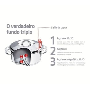Capacidade da Panela: Caçarola funda 1,8L; Caçarola funda 3,6L; Caçarola rasa 2,9LLinha: Solar