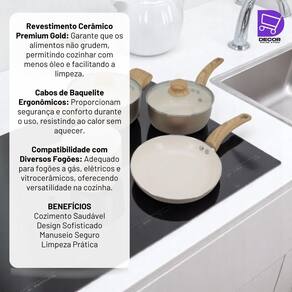 Compatibilidade com fogões: uso em fogões a gás, elétricos e vitrocerâmicos.