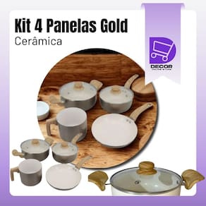 Modelo: Jogo de Panelas Gold de Alumínio com Revestimento Cerâmico e Cabo de Baquelite - 4 Peças