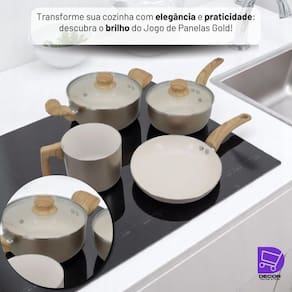 Prepare suas receitas com o jogo de panelas Fullcommerce Gold, ideal para o uso doméstico no dia a dia. Com corpo em alumínio e revestimento cerâmico premium, o conjunto oferece cozimento eficiente e ajuda a evitar que os alimentos grudem. Os diferentes tamanhos de caçarola, frigideira, fervedor e panela permitem preparar desde molhos e refogados até caldos e preparos mais volumosos com praticidade. O acabamento dourado e as tampas de vidro temperado adicionam um visual sofisticado à cozinha, combinando com diversos estilos de decoração. A marca Fullcommerce reúne materiais de alta qualidade e projeto pensado para durabilidade e facilidade de uso.