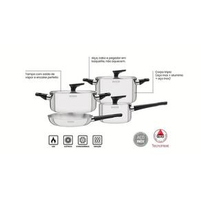 Jogo De Panelas Tramontina Grano Baquelite Em Aço Inox Com Corpo Triplo E Cabos E Alças Em Baquelite Tramontina Jogo de Panelas Tramontina Grano Baquelite em Aço Inox com Corpo Triplo e Cabos e Alças em Baquelite Tramontina - O Jogo de Panelas Tramontina Grano Baquelite em Aço Inox com Corpo Triplo e Cabos e Alças em Baquelite Preto 4 Peças vai deixar sua cozinha muito mais completa e funcional! Produzidas em aço inox com corpo triplo (aço inox + alumínio + aço inox), as peças que compõem o jogo distribuem o calor de maneira uniforme e devido a isso, cozinham os alimentos mais rápido e devido a isso, economizam tempo e energia. Os cabos e pegadores são em baquelite antitérmico, material que reduz a propagação de calor e garante um manuseio mais seguro e confortável. Além disso, elas acompanham tampa com saída de vapor e são super fáceis de limpar, deixando a hora de cozinhar e de limpar, muito mais prática. Um jogo de panelas resistente e durável, perfeito para quem preza pelo melhor! Características Gerais do Produto: Garantia: - 90 dias de garantia legal para defeitos de fabricação