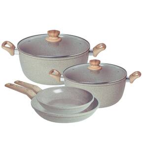 Prepare suas receitas favoritas com mais praticidade e sofisticação com o nosso Jogo de Panelas com Revestimento Cerâmico Antiaderente da Fratelli. Projetado para oferecer máxima eficiência, este conjunto combina design sofisticado na tonalidade bege, cabos em baquelite soft touch com acabamento amadeirado e tampas em vidro temperado para um toque de modernidade e funcionalidade na sua cozinha.
