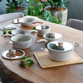 Jogo de Panelas Indução 4 Peças Vanilla em Alumínio e Revestimento Cerâmico Antiaderente Sirius Brinox - Na sua casa