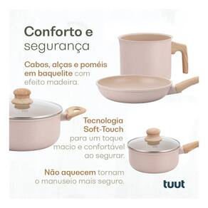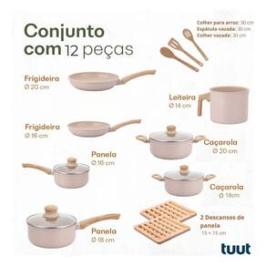 Com antiaderente 100% livre de metais pesados e substâncias nocivas, o conjunto permite cozinhar com menos óleo, preservando o sabor natural dos alimentos e facilitando a limpeza. Disponível em kits com 4, 7 ou 12 peças e nas cores elegantes Onyx (Preto) e Latte (Vanilla).