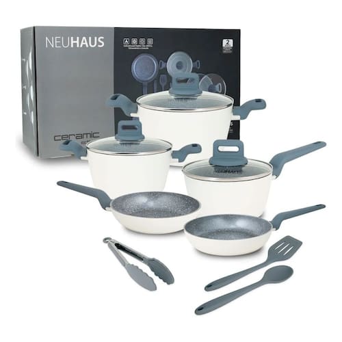 O Jogo de Panelas Indução Neuhaus 8 Peças com revestimento cerâmico antiaderente é uma escolha sofisticada e funcional para quem busca aliar praticidade, saúde e elegância na cozinha. Produzido com materiais de alta qualidade, o conjunto é compatível com diversos tipos de fogões incluindo indução, gás, elétrico, vitrocerâmico e halógeno oferecendo versatilidade no preparo de diferentes receitas. Seu revestimento interno em cerâmica antiaderente permite cozinhar com menos óleo, contribuindo para uma alimentação mais saudável e facilitando a limpeza após o uso.