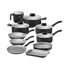 Jogo de Panelas Linz 10Pçs Preto Antiaderente Tramontina Transforme sua cozinha com o jogo de panelas Tramontina Linz em alumínio com revestimento interno e externo em antiaderente Starflon Max preto 10 peças. Ideal para uso no dia a dia, este jogo tem panelas feitas em alumínio de alta qualidade e garantem um cozimento rápido e uniforme, sem que grudem em sua superfície, pois contam com revestimento interno e externo em antiaderente Starflon Max. As peças têm tampas de vidro temperado com bordas de aço inox que permitem visibilidade durante o preparo. Seus cabos e alças são em baquelite e nylon, ambos materiais antitérmicos que garantem maior segurança e conforto no manuseio. Compatíveis com fogões a gás, elétricos e vitrocerâmicos, essas panelas podem ser lavadas na máquina de lavar louças, tornando seu dia a dia mais prático e eficiente CONTEÚDO: 1-frigideira 16cm -0,4L 1-frigideira 20cm -0,8L 1-panela 14cm -0,8L 1-panela 16cm -1,4L 1-caçarola 18cm -2L 1-caçarola 20cm -2,8L 1-fervedor 12cm -1,1L 1-panquequeira 22cm -0,6L 1-assadeira rasa 28cm -2L 1-assadeira Redonda 22cm -1,7L Marca: Não Informado Ean: 7891112345232