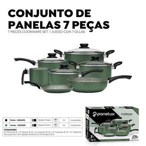 É essencial ter produtos práticos que facilitem nosso dia a dia. Com o conjunto de panelas Maximum Panelux, a preparação dos seus pratos será muito mais gostosa. Produzido em alumínio 2mm com revestimento interno e externo antiaderente, seu alto poder de antiaderência faz com que os alimentos não grudem, tornando-a muito fácil de lavar. Conteúdo do conjunto:br / 1 Panela com tampa 16 cm 1.5 litrosbr / 1 Panela com tampa 18 cm 2 litrosbr / 1 Caçarola com tampa 20 cm 3 litrosbr / 1 Caçarola com tampa 22 cm 4 litrosbr / 1 Ferverdor 14 cm 1.6 litrosbr / 1 Frigideira francesa 20 cmbr / 1 Frigideira funda com tampa 22 cmCom cabo em baquelite antitérmico, que permite um manuseio seguro, pois não esquenta e evita queimaduras. É ainda um item resistente e durável, que pode ir à máquina de lavar louças todos os diasbr / br / br / Ean: 7898147775973