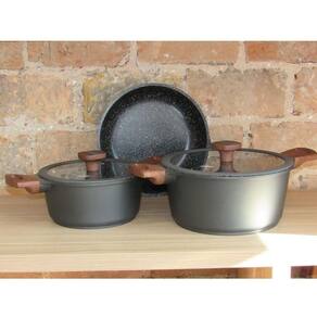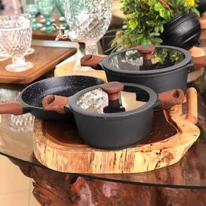 Conjunto de Panelas Titanium 3 Peças MTA Nova Linha de Panelas Titanium MTA, Composta por Tres Peças, Sendo Duas Caçarolas e Uma Frigideira. Inovação e Tecnologia Juntas Resume Em Um Belo e Requintado Conjunto de Panelas. Características: Marca: Mta Material: Alumínio Injetado Espessura: 5mm Fogões: a Gás, Eletrônico, vitrocerâmico e indução Possui tampa de vidro temperado Saída para vapor Cabos Soft-Touch Pode ser utilizado em lava louças Revestimento Cerâmico Marmorizado Composição: Caçarola 24 Cm De 4,3 Litros, Tampa de Vidro Temperado Com Anel de Silicone e Pegadores Soft-Touch Caçarola 20 Cm De 2,4 Litros, Tampa de Vidro Temperado Com Anel de Silicone e Pegadores Soft-Touch Frigideira 24 Cm 1,9 Litros, Pegadores Soft-Touch Compre agora mesmo seu Jogo de Panelas Titanium, um jogo de alta qualidade, seu corpo de alumínio injetado com 5mm de espessura traz uma enorme robustez e durabilidade ao produto. Seu interior revestido com cerâmica marmorizada traz toda a qualidade dos revestimentos de cerâmica, trazendo maior sabor para a comida e praticidade á quem utiliza. Seu revestimento cerâmico marmorizado juntamente com a madeiras de seus cabos proporcionam um design robusto que combina com qualquer tipo de cozinha seja moderna ou tradicional. Ean: 6015016334371