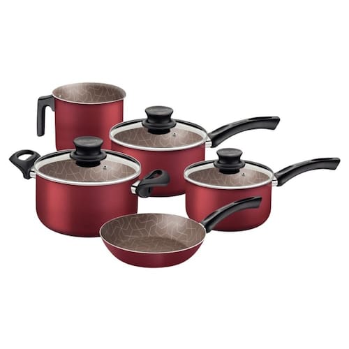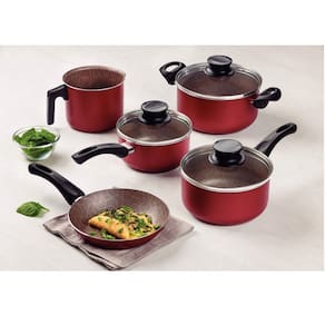 Jogo de Panelas Paris 5 Peça em Alumínio com Revestimento Interno e Externo Antiaderente Vermelho Tramontina - Na sua casa!